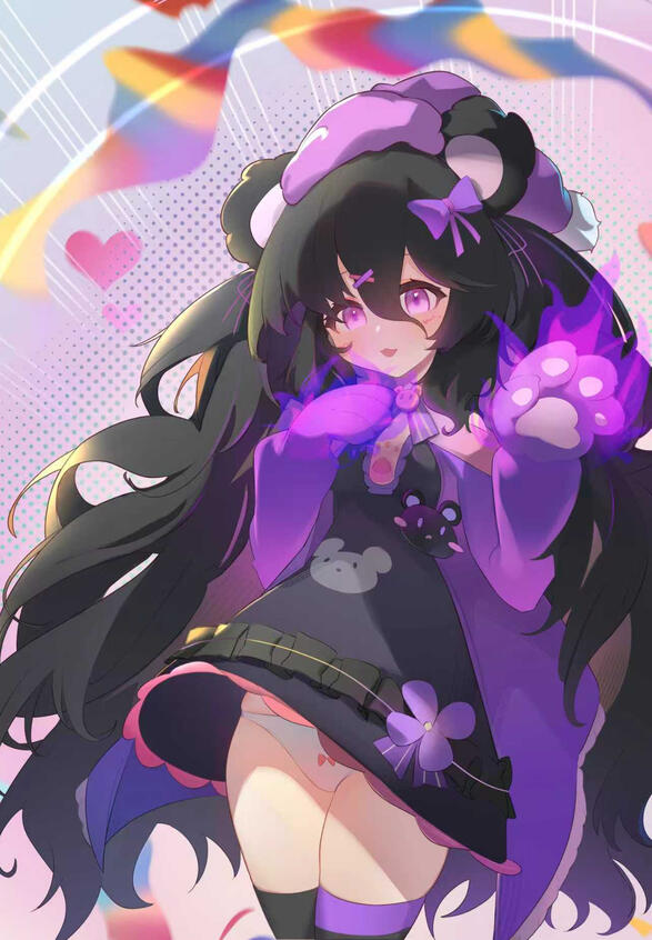 Your cozy-but-deadly fire bear, purple energy and endless chaos.